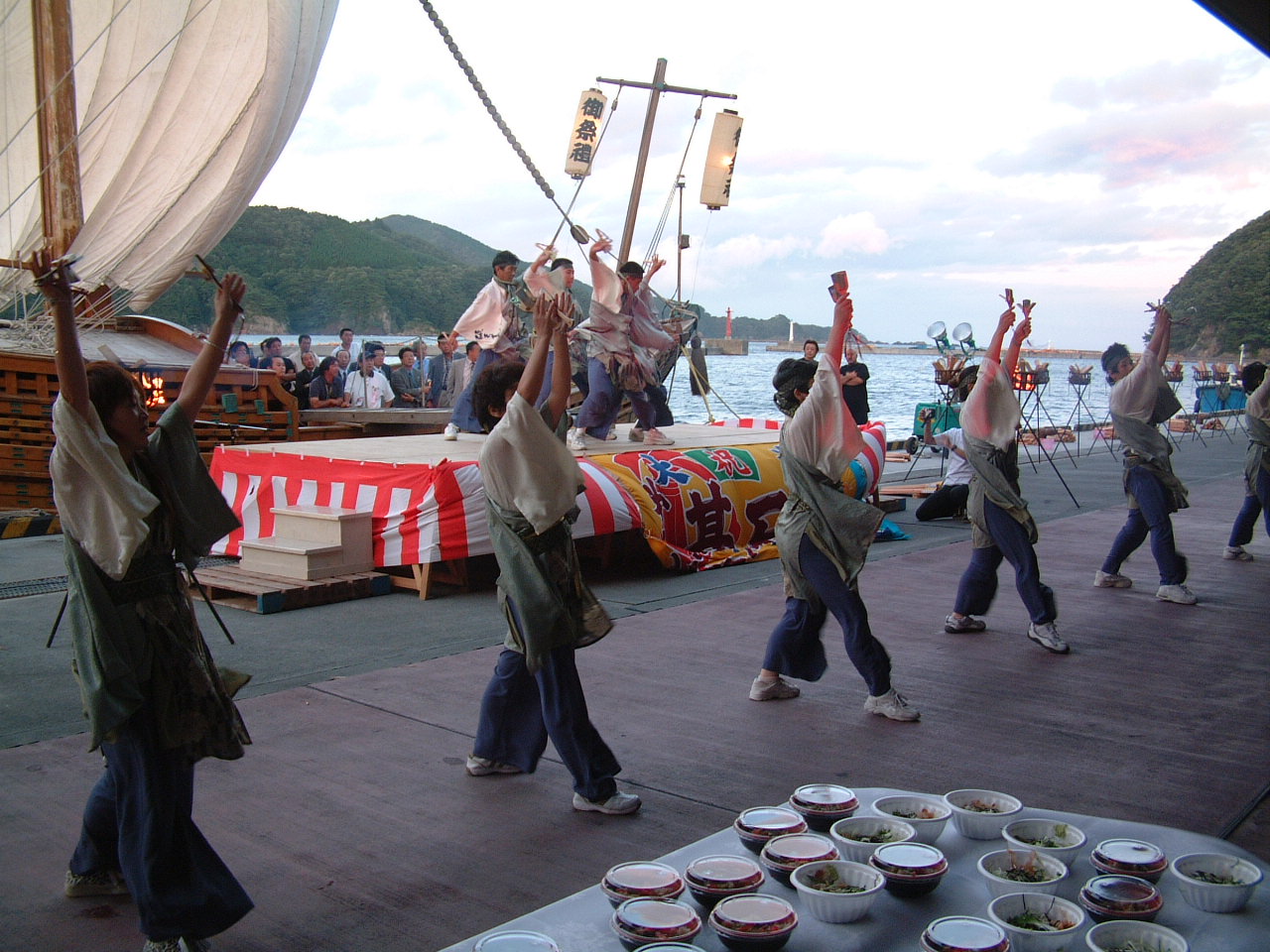 船の前で踊ってます、誰かコメントを・・・