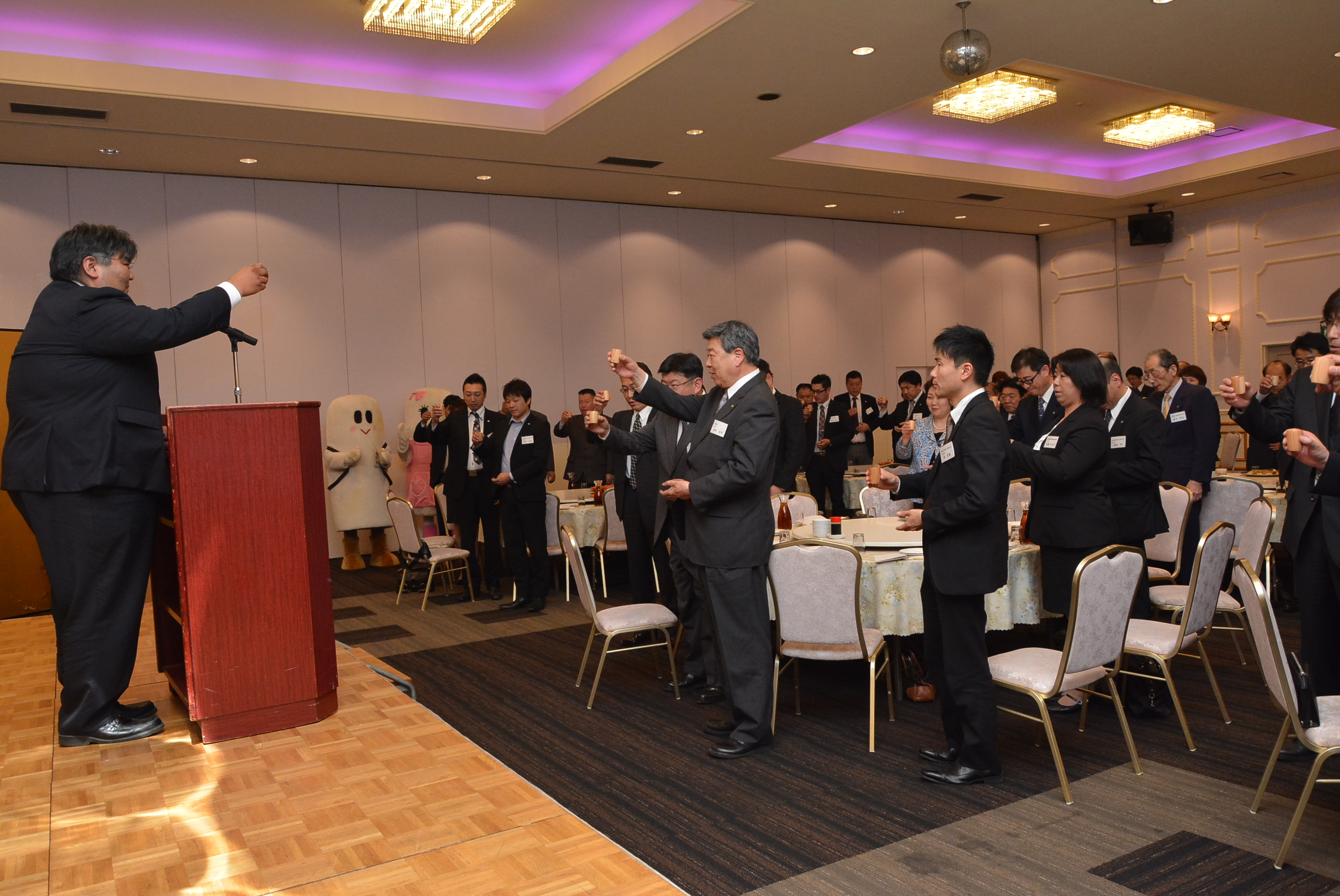 昨年度の武田会長よりも年齢は上だが熱い思いは誰にも負けず、青年部卒業を前に最後の花道を会長でという思いを胸にパワフルかつアグネッシブな気持ちを会員にぶつけて始まった平成25年度定期総会。そして懇親会では御多忙の中大館市産業部長 飯泉信夫様・大館商工会議所 会頭職務執行者 副会頭 竹村雅行様・日本政策金融公庫大館支店 支店長 萩原 薫様・秋田県商工会議所青年部連合会 会長 佐藤浩志様・各単会青年部メンバー・OB・卒業生を前にこれからの大館発展の一翼を担うと共に青年部のPRと会員メンバーのさらなる躍進を誓った。これからの青年部活動に声援をよろしくお願いします!