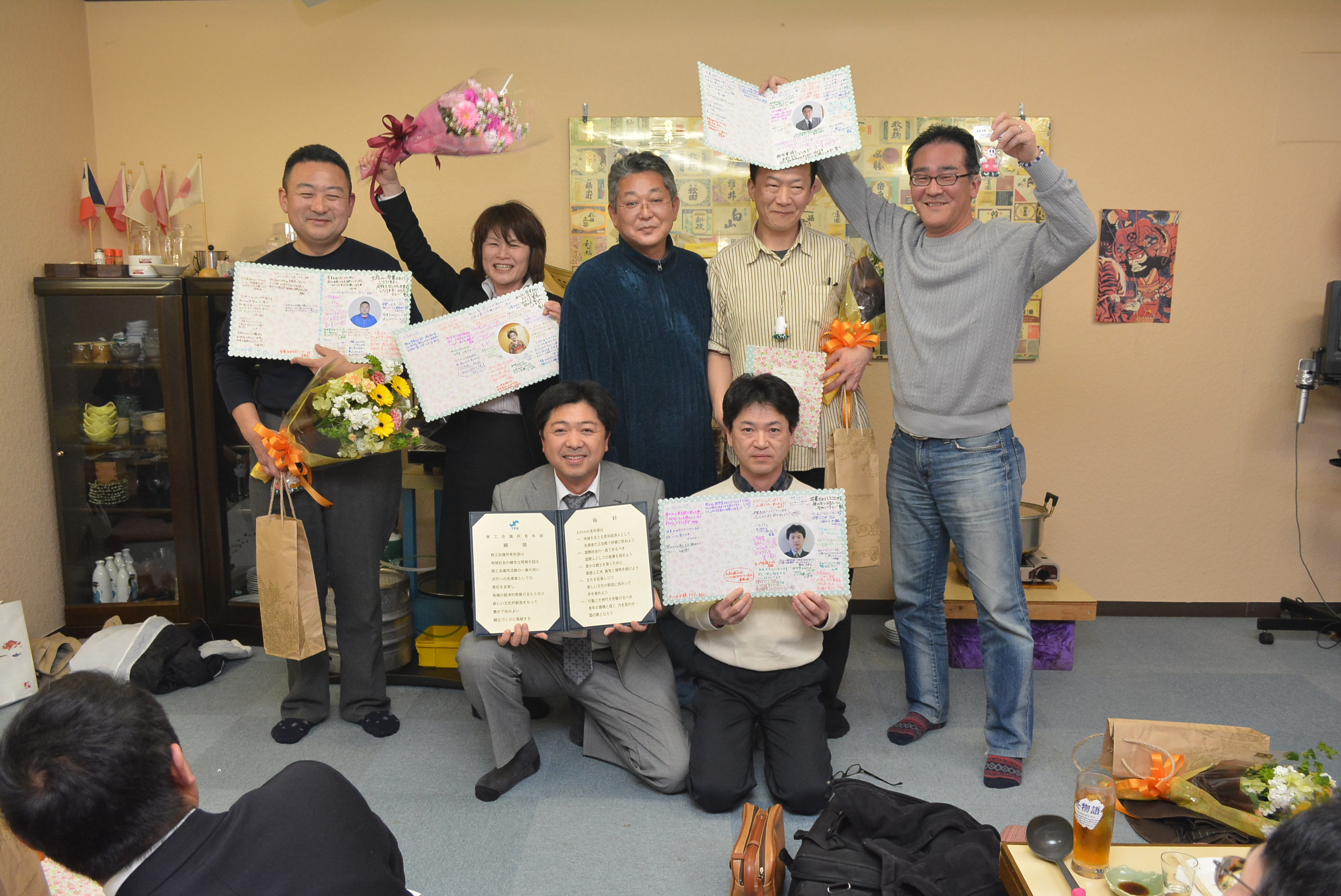三浦(司)・菅原(大)・森・武田(喜)・武田(純)・木村(啓)・長井会長・木次谷副会長・田口会計理事・くみちゃん・三宅さん(ハウス食品)・木野内さん(北鹿新聞) 計12名